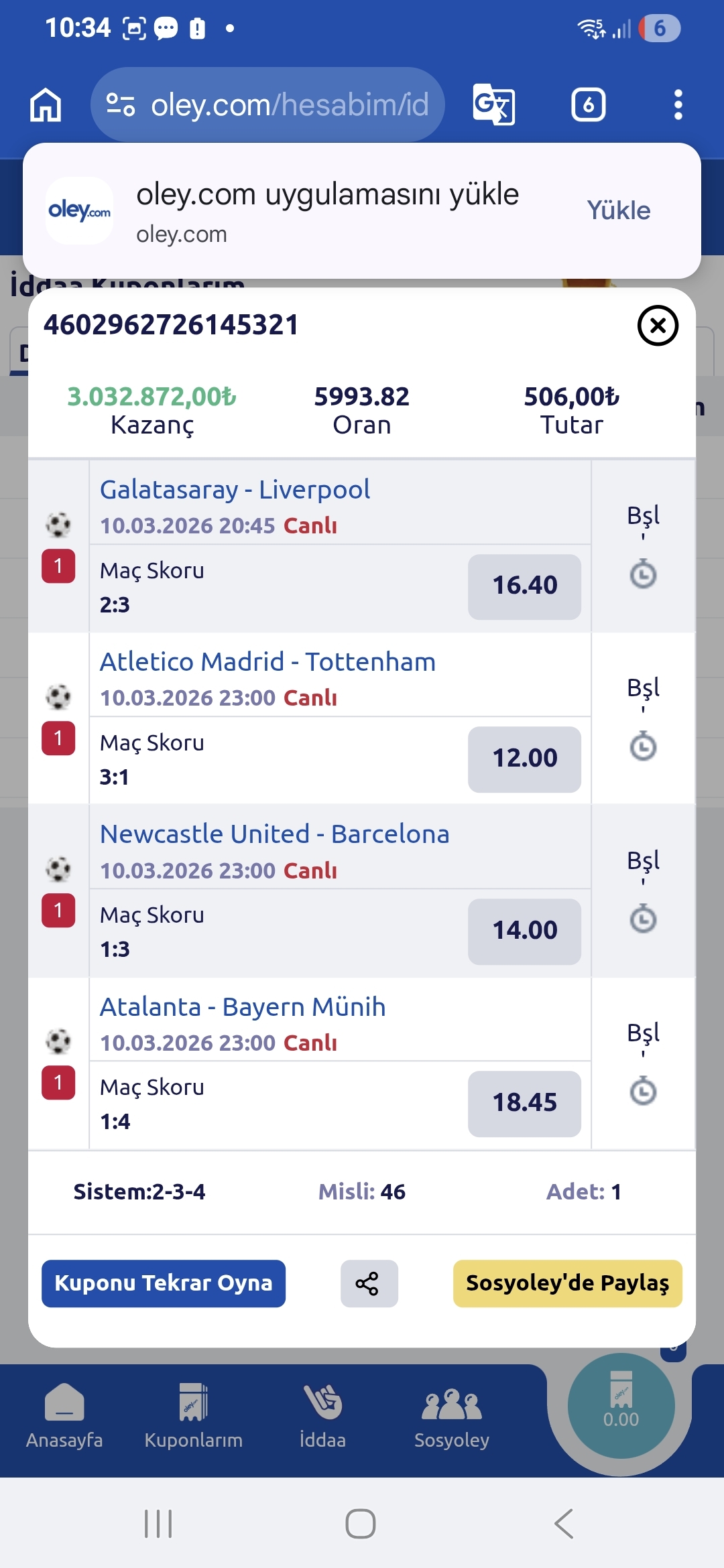 Bu Haftada 80 Tl Lik Bir Kupon Oynadık Kuponumuz Küçük Olsada Hayallerimiz Büyük Herkese Bol Şanslar Yeni Haftada...