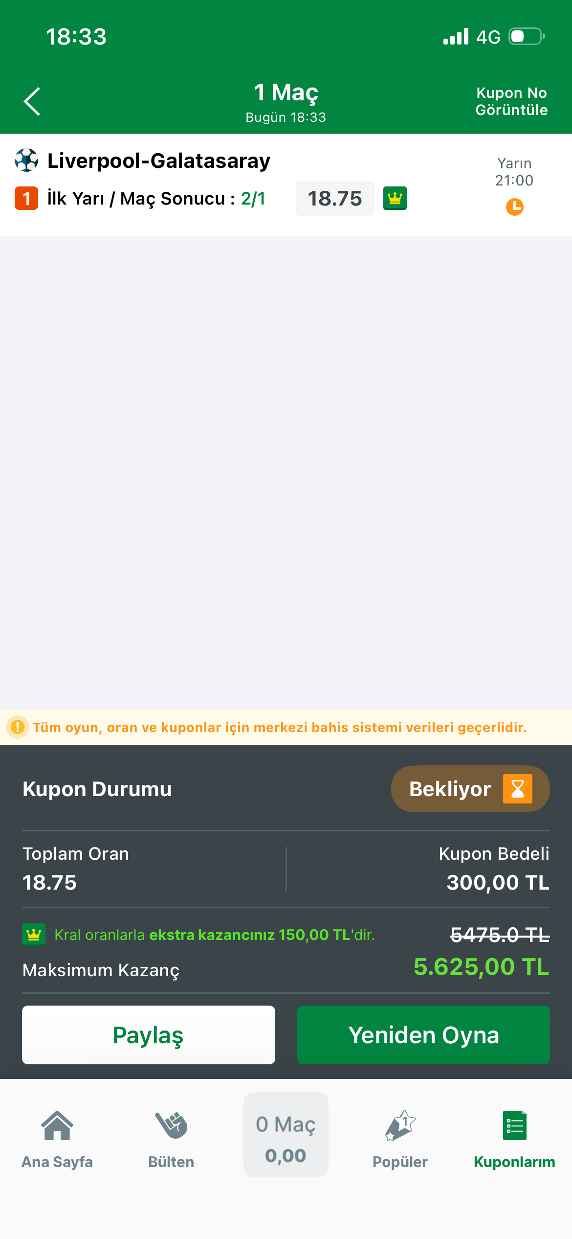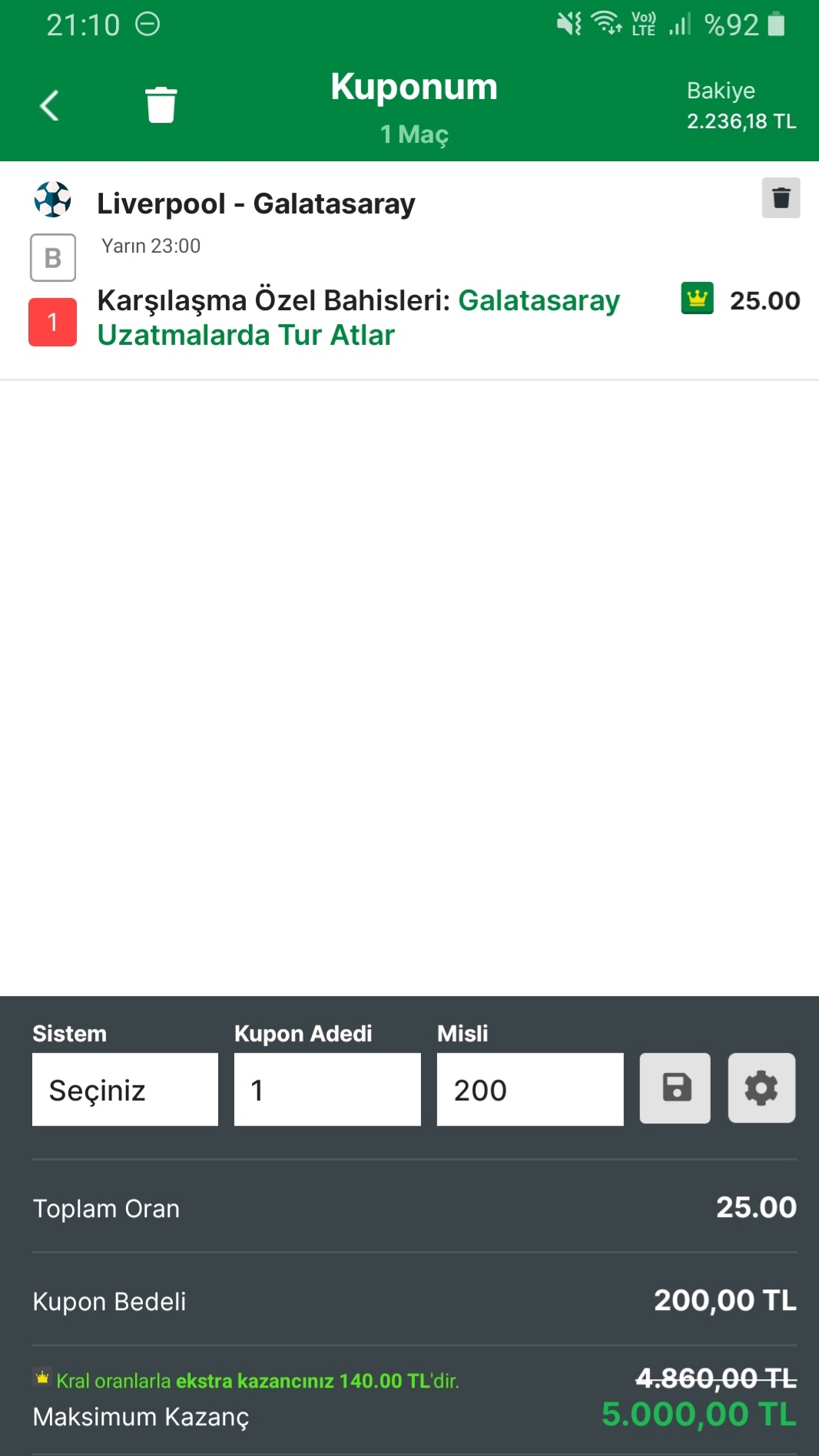 güzel oran, bende bi 50 TL risk alayım, bol şans.