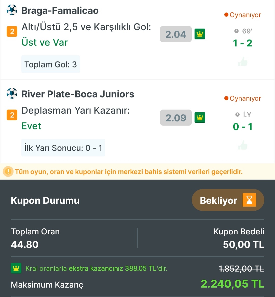 🎉Spor Totonun İlk ve son maçları kapatmak