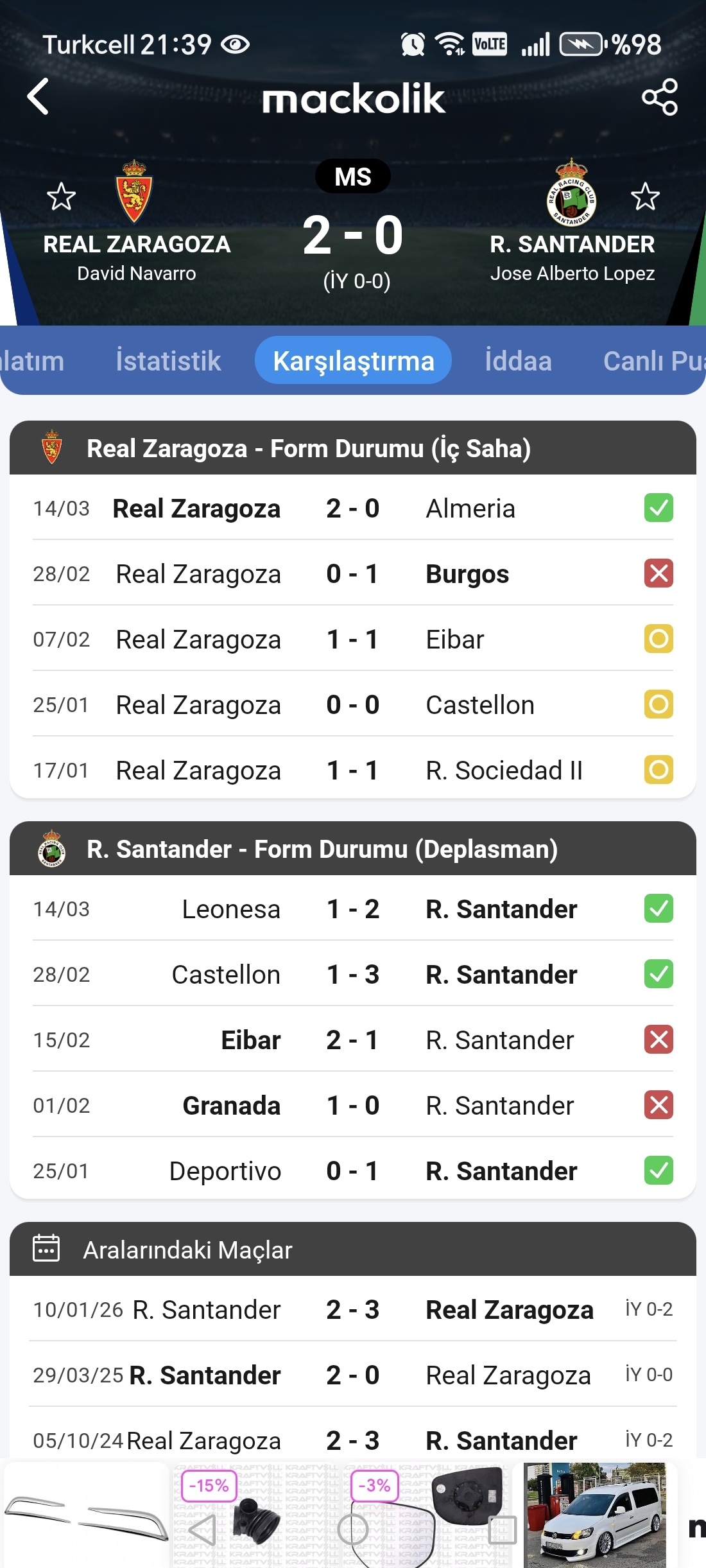 15.Maç Sonucu:2-0 🎯 📅 29.03.2026 19:30