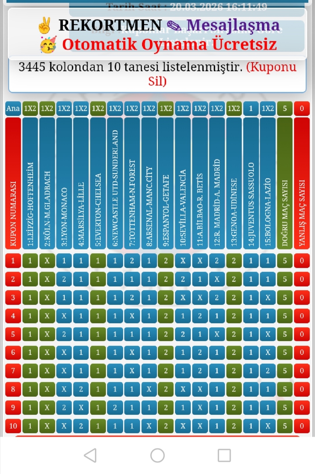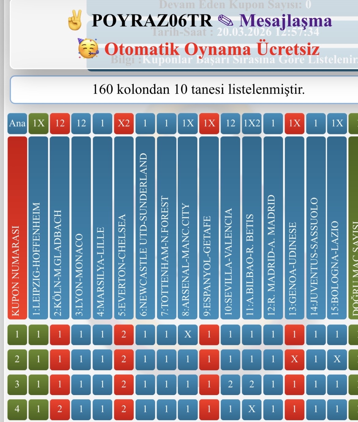 2 si 2 ihtimalli maçlar var sitede 15 e gıden arkadaşlar var ama umarım sonuna kadar giderler.