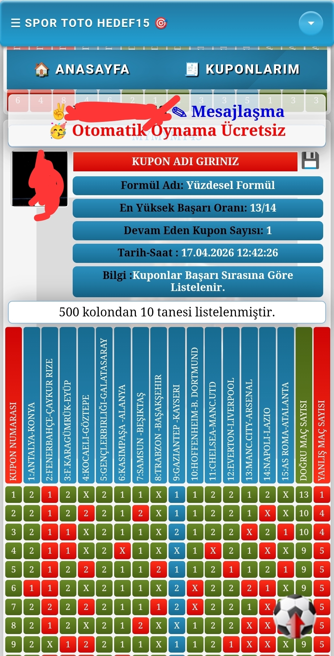 🎉Formüllü oynamak, Filtreli oynamak,Düz oynamak, Rastgele kuponlar ile oynamak...