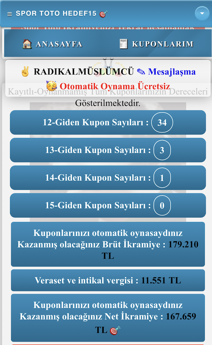 Son 3 maçım kapalı 12garanti umarım sürprizler gelirde kupon parası verir bu spor toto zor iş