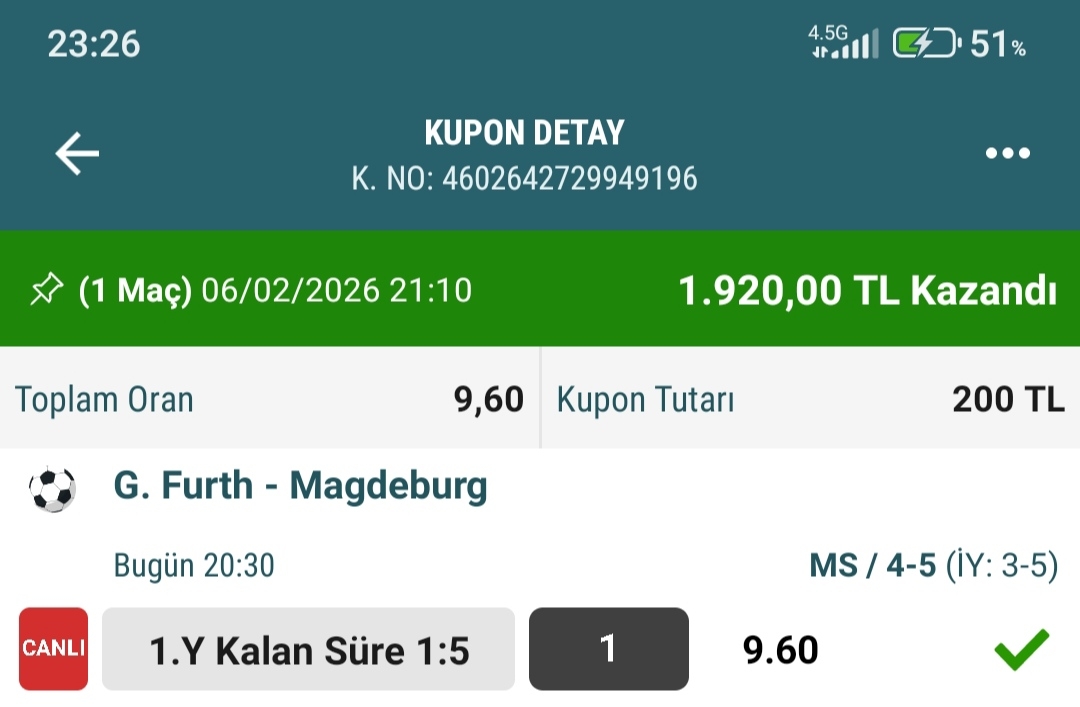 Toplam Otomatik Oynanan Kupon Fiyatı: 6.198.510TL