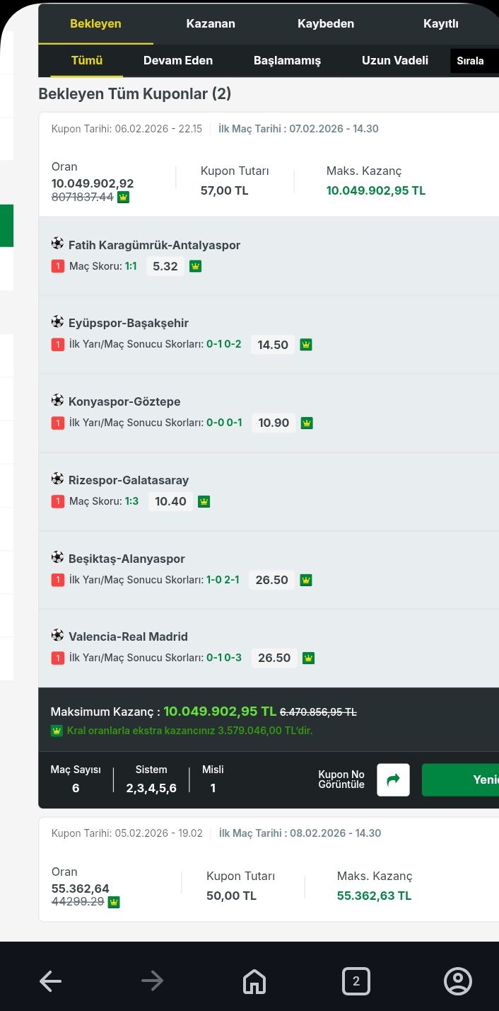 💥Kısacası: Spor toto da aslında maksimum limit yoktur. Dilediğiniz kadar kupon yapabilirsiniz.