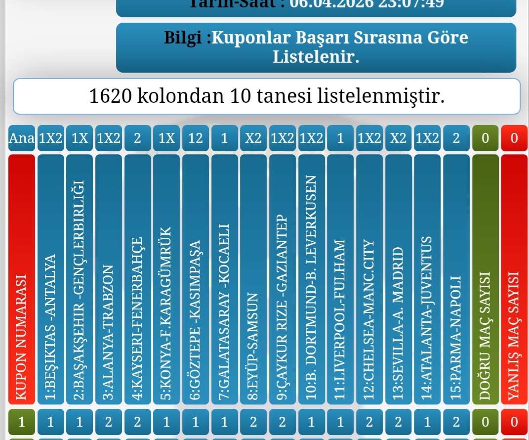 Spor toto en iyi oynama formülü Garantili Özel sistem formülü ile kuponumuzdaki israf , gereksiz kuponlardan eleyebilirsiniz.Garantili Özel sistem formülünde, Tercihlerimiz ve filtreleriniz gelirse 15 garantilidir.