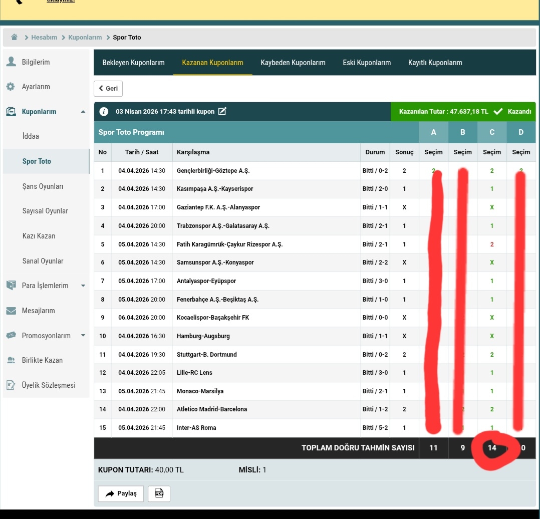 👑Kısacası: Üyelerimize farklı kuponlar yaparak 15i tek başlarına bilme fırsatını veriyoruz. Kullanıp kullanmamak üyelerimizin tercihidir.