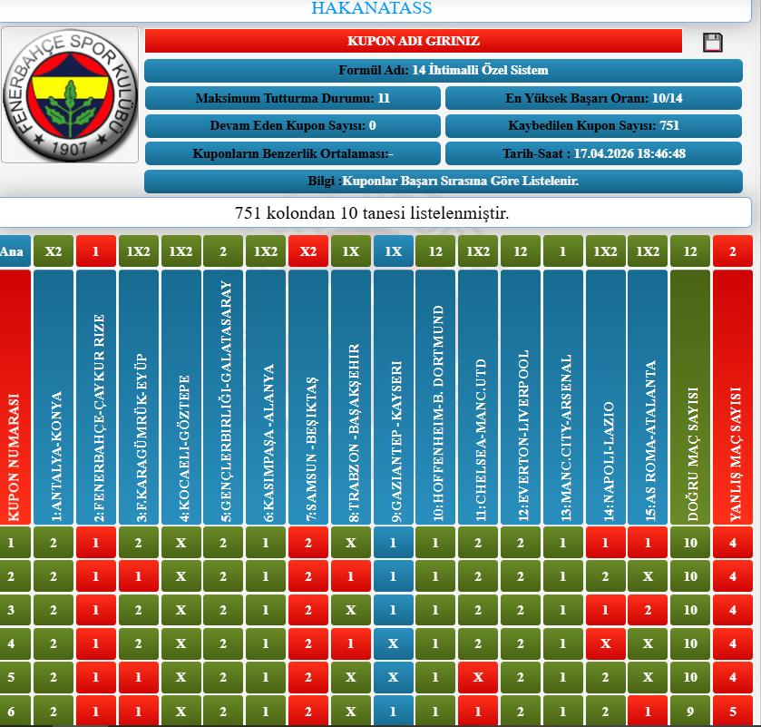 🎉Zor olması tahmin edilen haftalarda; 14 Garantili formül ile büyük kuponlar oynamak