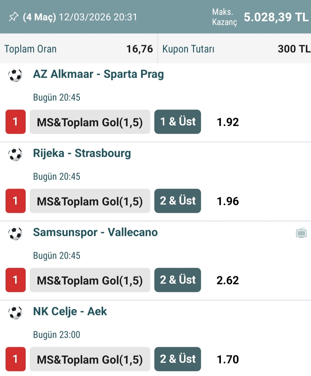 15.Maç 📅 14.03.2026 17:00