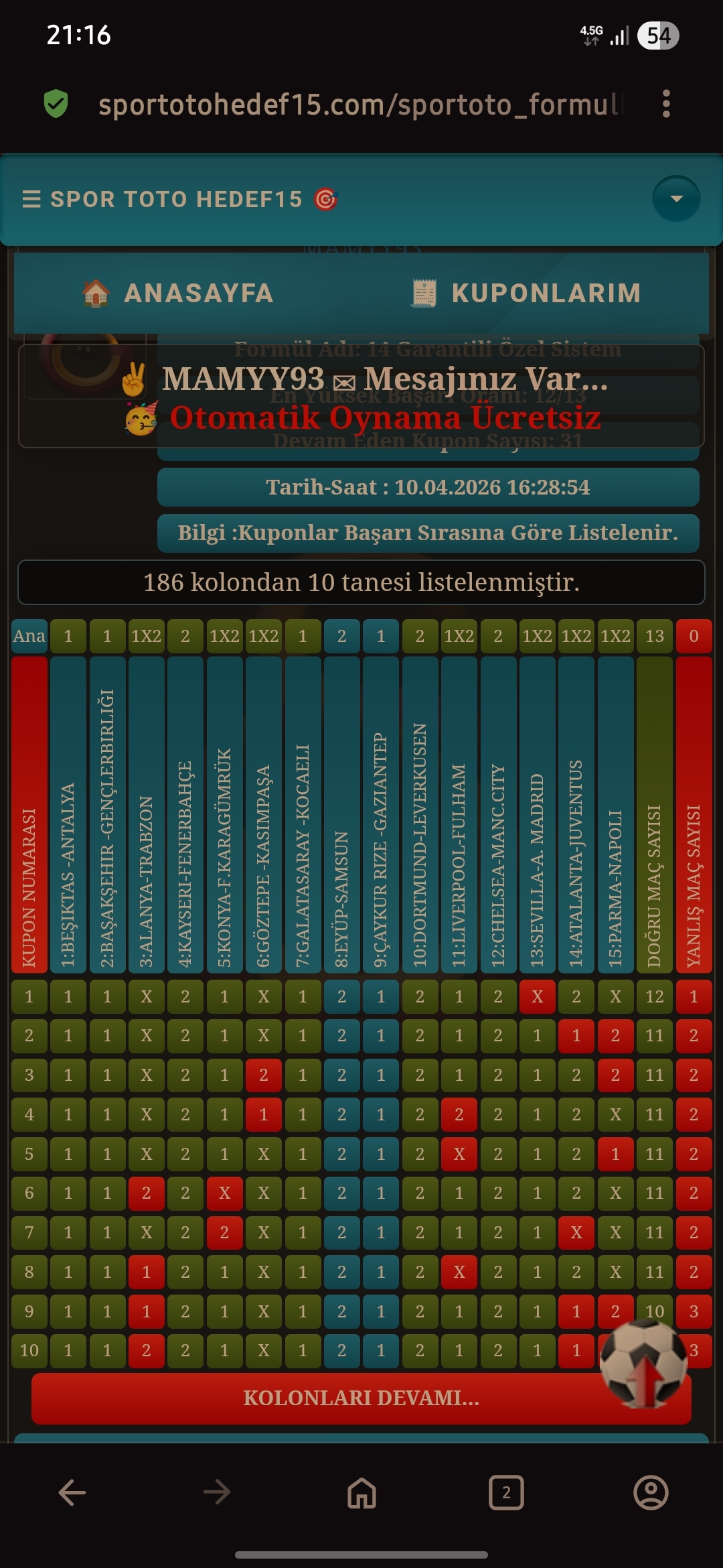 Spor toto hedef 15 formülünü eklermisiniz admin brn onu oynuyorum