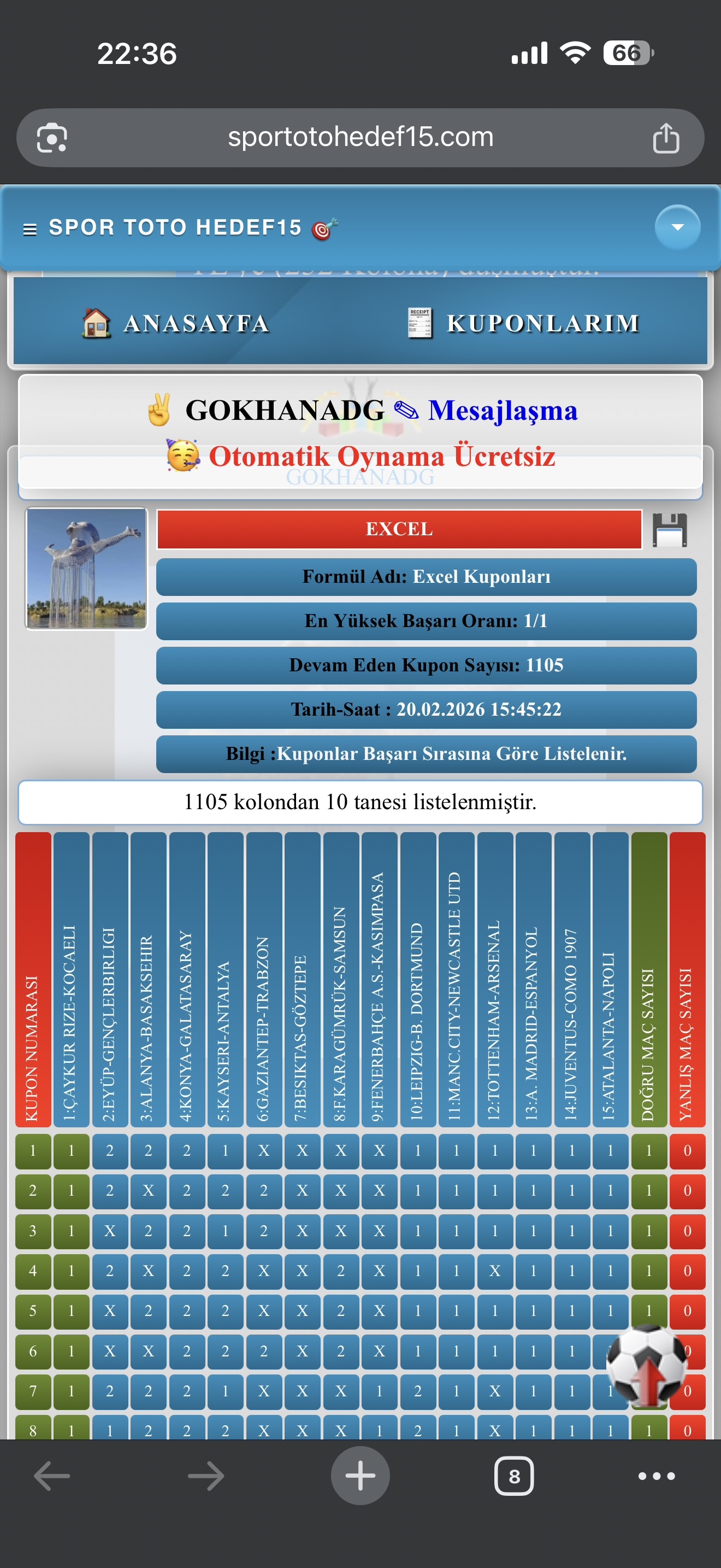 Arkadaslar bu hafta excel destekli bi kupon yaptim egerki istedigim gibi giderse detayli aciklamali anlatacagim kafama yatti insallah maclar guzel gelir herkese bol sans