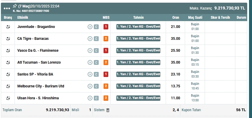 müslümcü usta örnek olsun diye paylaşıyorum alttada yazdım ama görmeyebilirsin. 1 misli oynanırsa 100bin ortalama veriyor 4 maçta. ama 2 misli oynanır şl uefa için en düşük 200-300bin arası gelir.