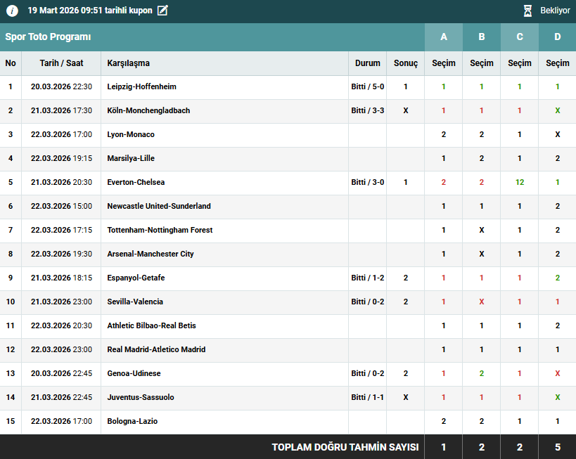 Sitemizde ve yasal bahis sitelerinde özellikle spor totonun son günü aşırı yoğunluk olduğundan kuponlarınızı otomatik oynamak için Lütfen Son Güne Bırakmayınız.
